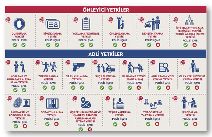 - Suç işlendikten sonra kaçan faillerin yakalanmasını sağlamak, işlenen suç veya kabahatlerin faillerinin kimliklerini tespit etmek,