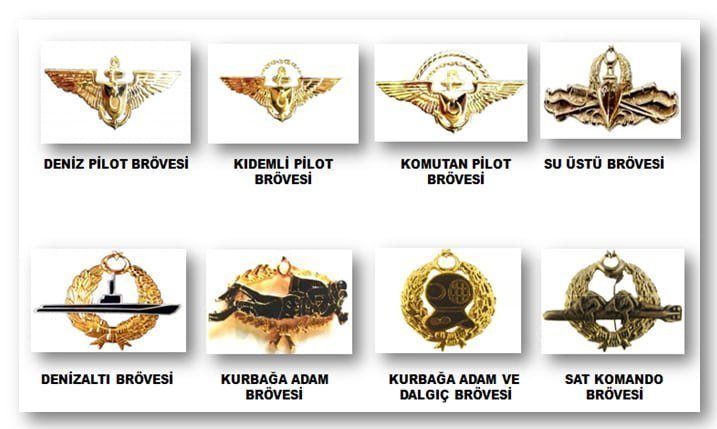 Deniz Kuvvetleri’nde bulunan başlıca bröveler şunlardır;