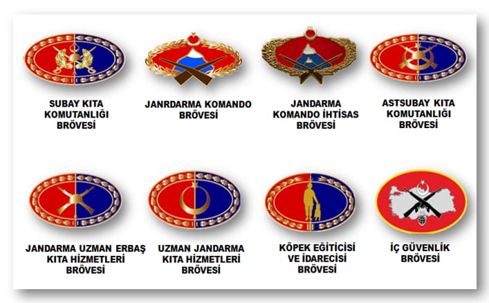 Jandarma Genel Komutanlığı’nda bulunan başlıca bröveler şunlardır;