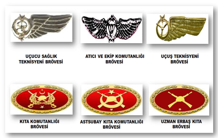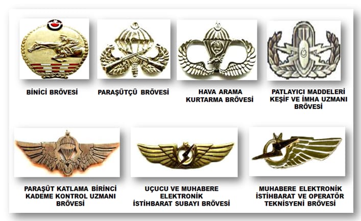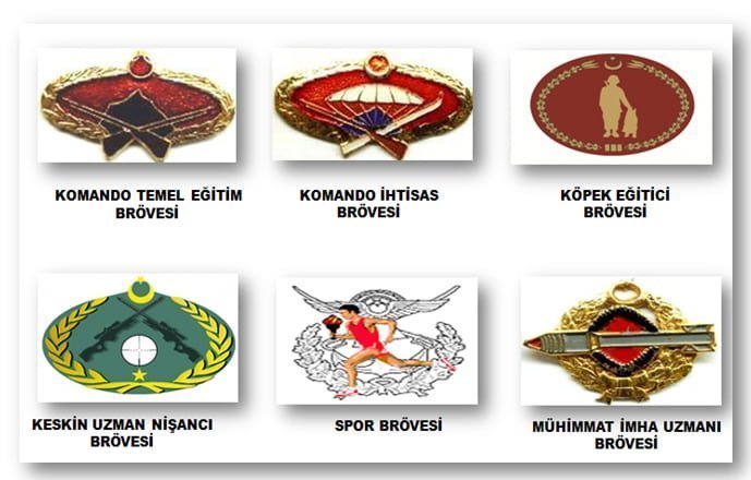Örnek olarak Kara Kuvvetleri’nde Paraşüt Brövesi, Deniz Kuvvetleri’nde SAT Komando Brövesi, Jandarma Genel Komutanlığı’nda ise Terörizmle Mücadele Uzmanı Brövesi gibi.