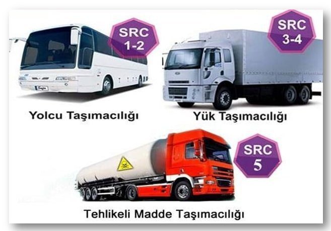 - SRC 4 Belgesi bulunan sürücüler tır, kamyon, pikap, panelvan ve kamyonet gibi yük taşıyan araçları kullanabilirler.
